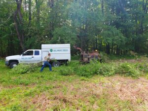 In West Brattleboro, at the Chalet we teamed up with the local CISMA (Cooperative Invasive Species Management Areas) chapter to learn about invasive species- how to identify them and how to properly manage. Then we pulled out the working gloves and loppers, fired up the chipper (run with expertise by All About Trees) and got to work! We hauled buckthorn, chopped multi-flora rose, rediscovered long hidden perennials, removed a full dumpster of old dumped trash, and attempted to avoid poison ivy. It was a tremendous kickoff!