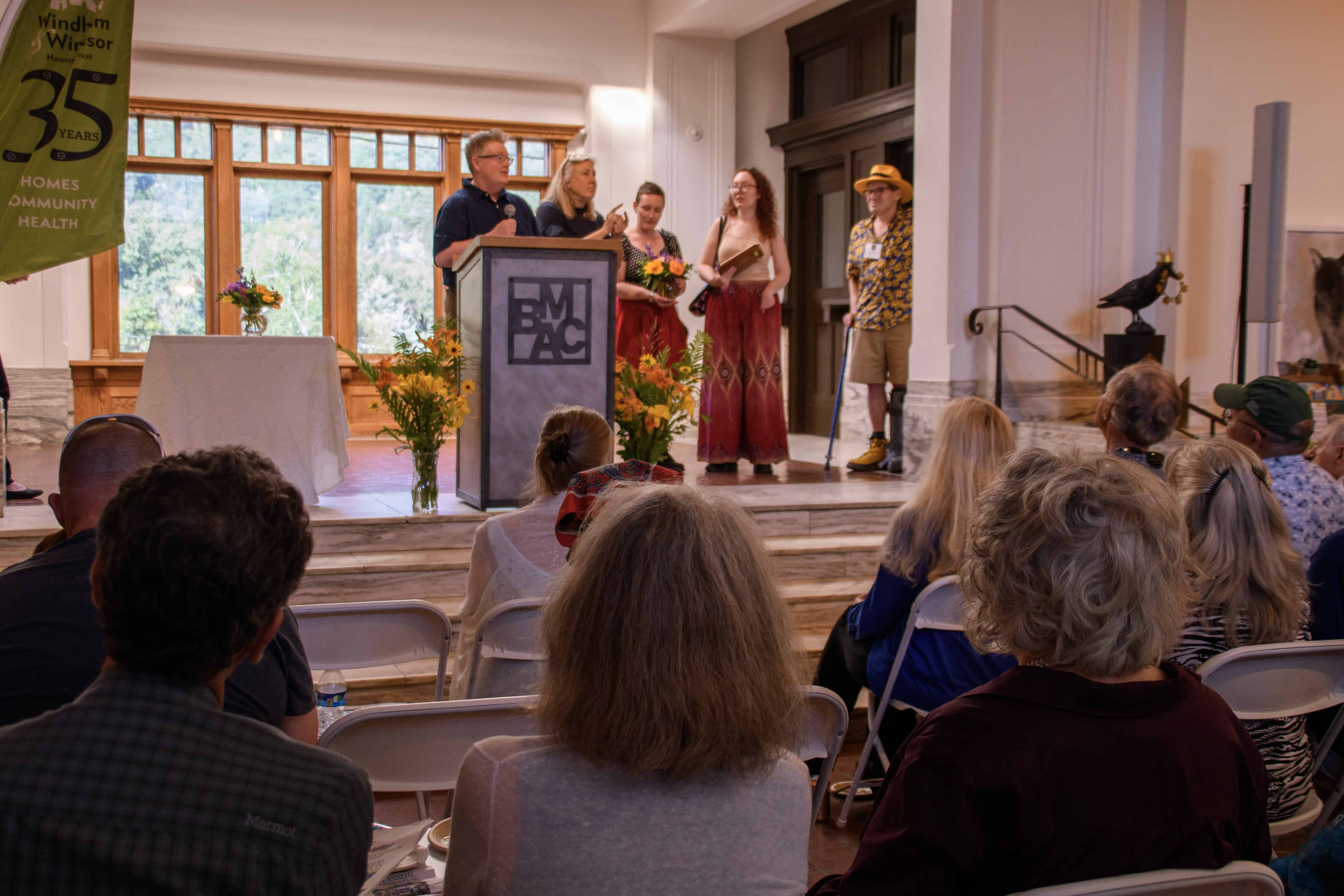 The Annual Celebration this year was full to the brim of inspiration, community, creativity, and meaning. We were thrilled to have over 100 of our members there. This included a great turnout from residents, some of which walked over in groups with our SASH For All staff. To those who were able to attend, thank you. It was incredible to spend the evening with you in the wonderful Brattleboro Museum Art Center.