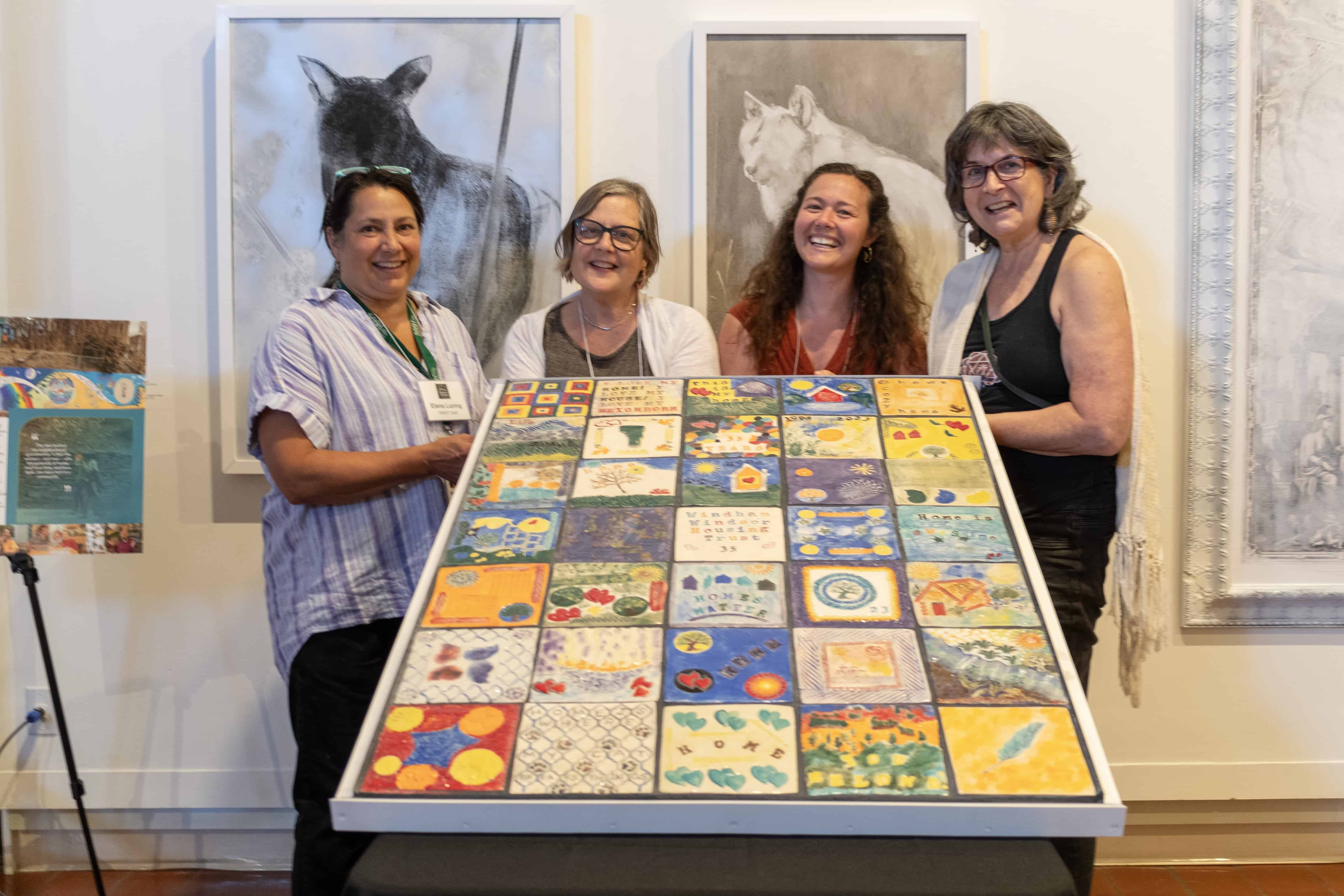 As we neared the close of the meeting, staff elevated some non-traditional impact numbers that illustrate our work- for instance, “The Home and Apartment Repair teams travel across the whole region, up to Rochester, down to Vernon, to meet with clients and improve the health and safety of the homes. That’s 9,161 miles over the course of the year” and “Through the development process in downtown Bellows Falls and Windsor, we removed 5,087 tons on contaminated soils”. We also celebrated the public art project we’ve been working on in community for over a year. Many thanks to the many hands that contributed to the “Home Mosaic”.